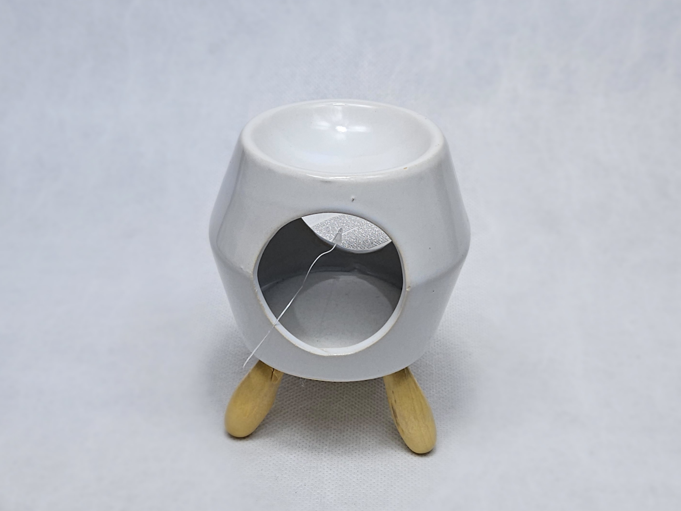 Ceramiczny, biały kominek zapachowy w połysku do podgrzewania wosków sojowych lub olejków w aromaterapii.