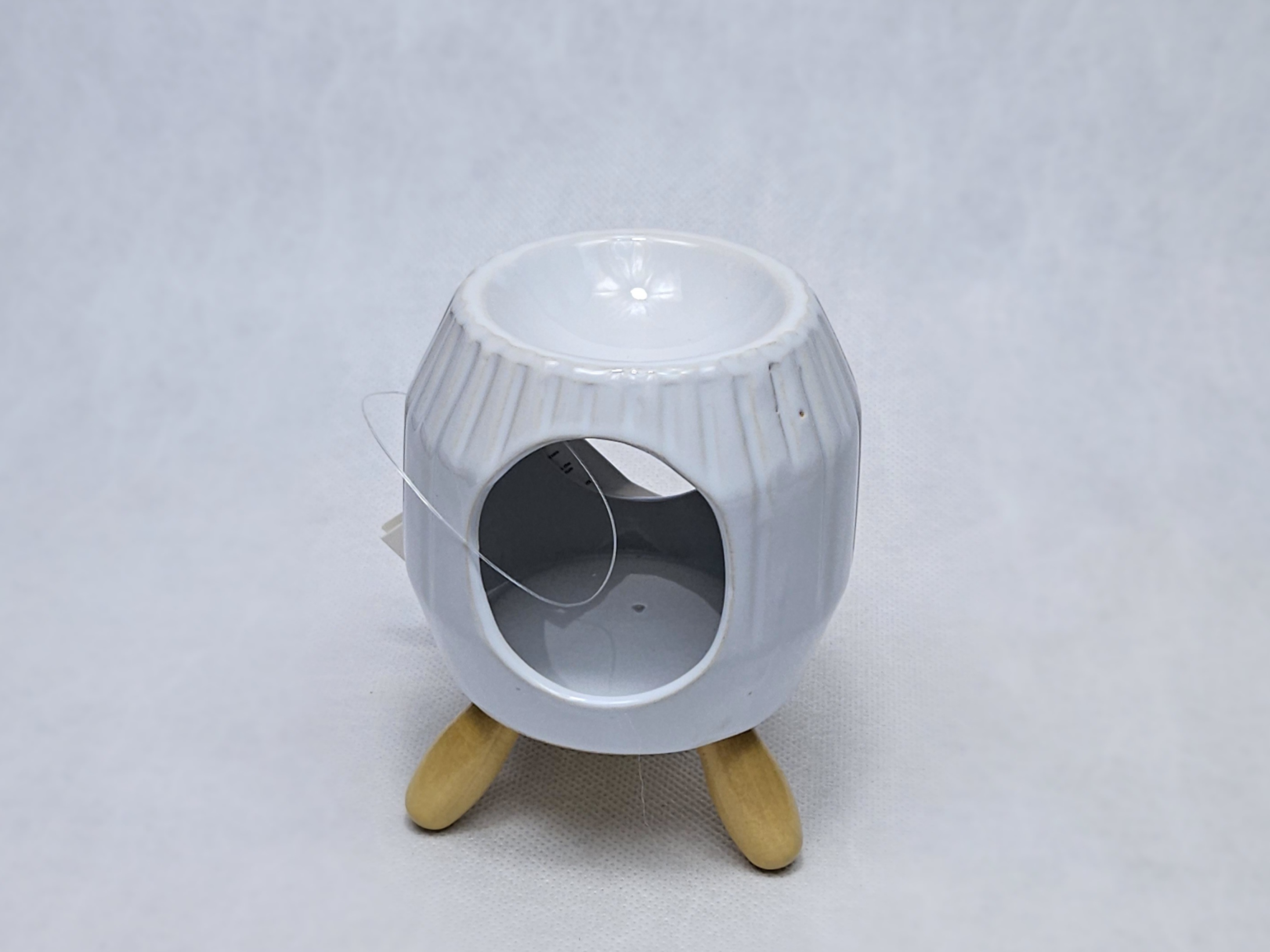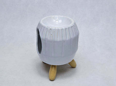 Ceramiczny, biały, strukturalny kominek zapachowy do podgrzewania wosków sojowych lub olejków w aromaterapii.