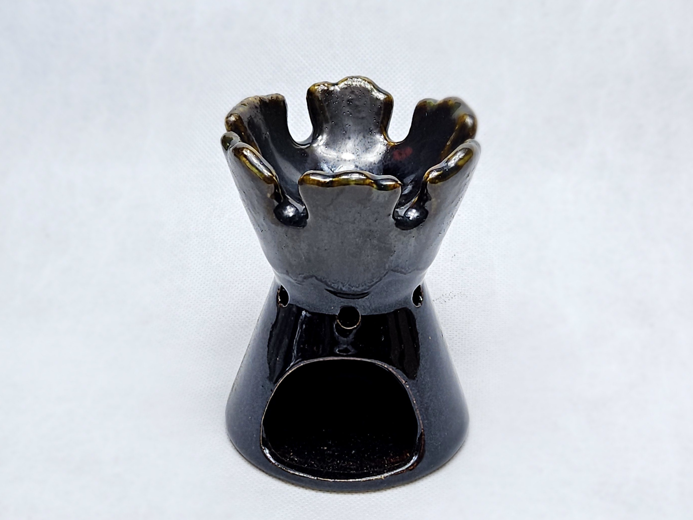 Ceramiczny, czarny kominek zapachowy w połysku do podgrzewania wosków sojowych lub olejków w aromaterapii.