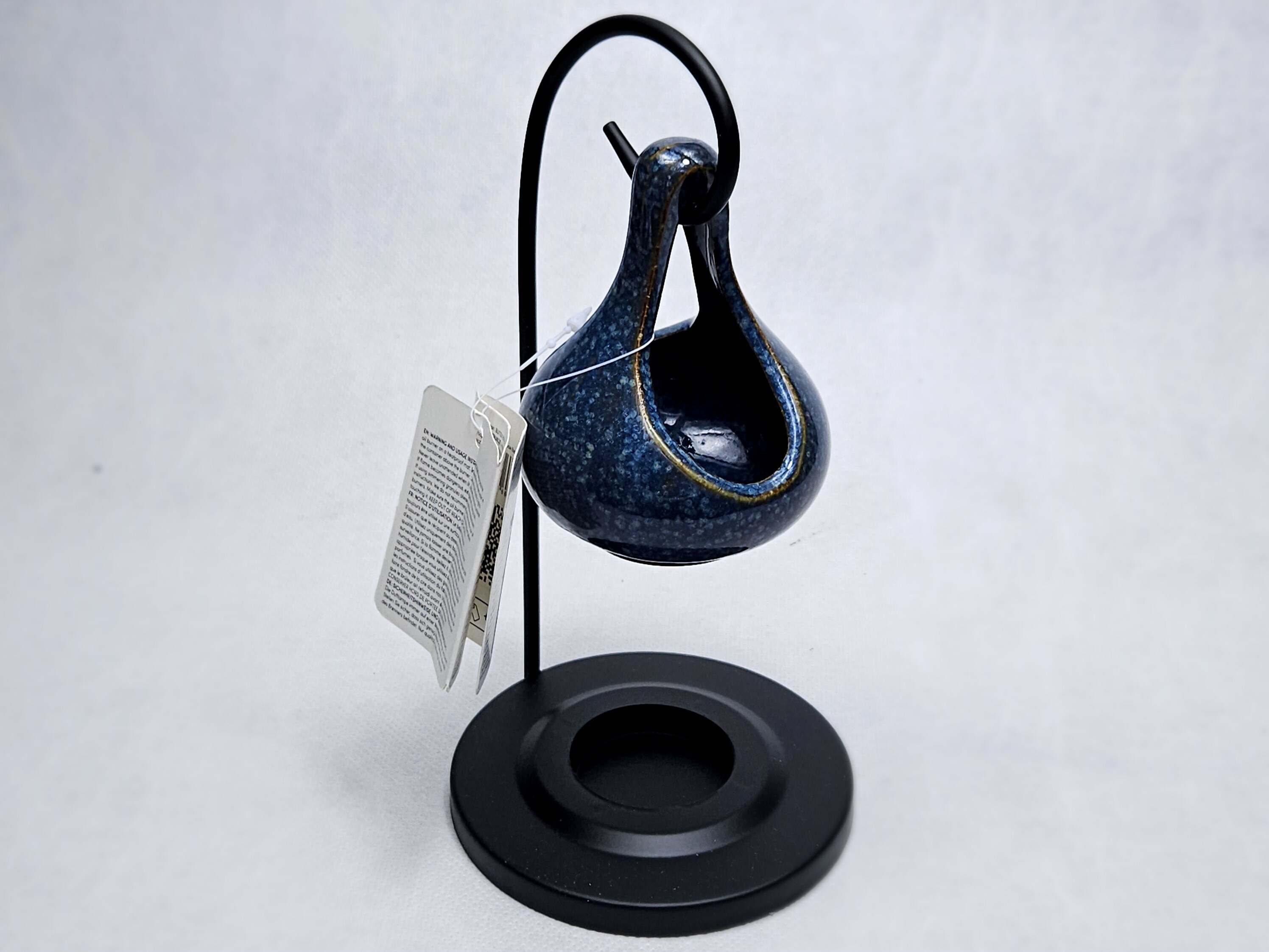 Ceramiczna, grafitowa łezka i metalowa podstawka w kominku zapachowym do podgrzewania wosków sojowych lub olejków w aromaterapii.