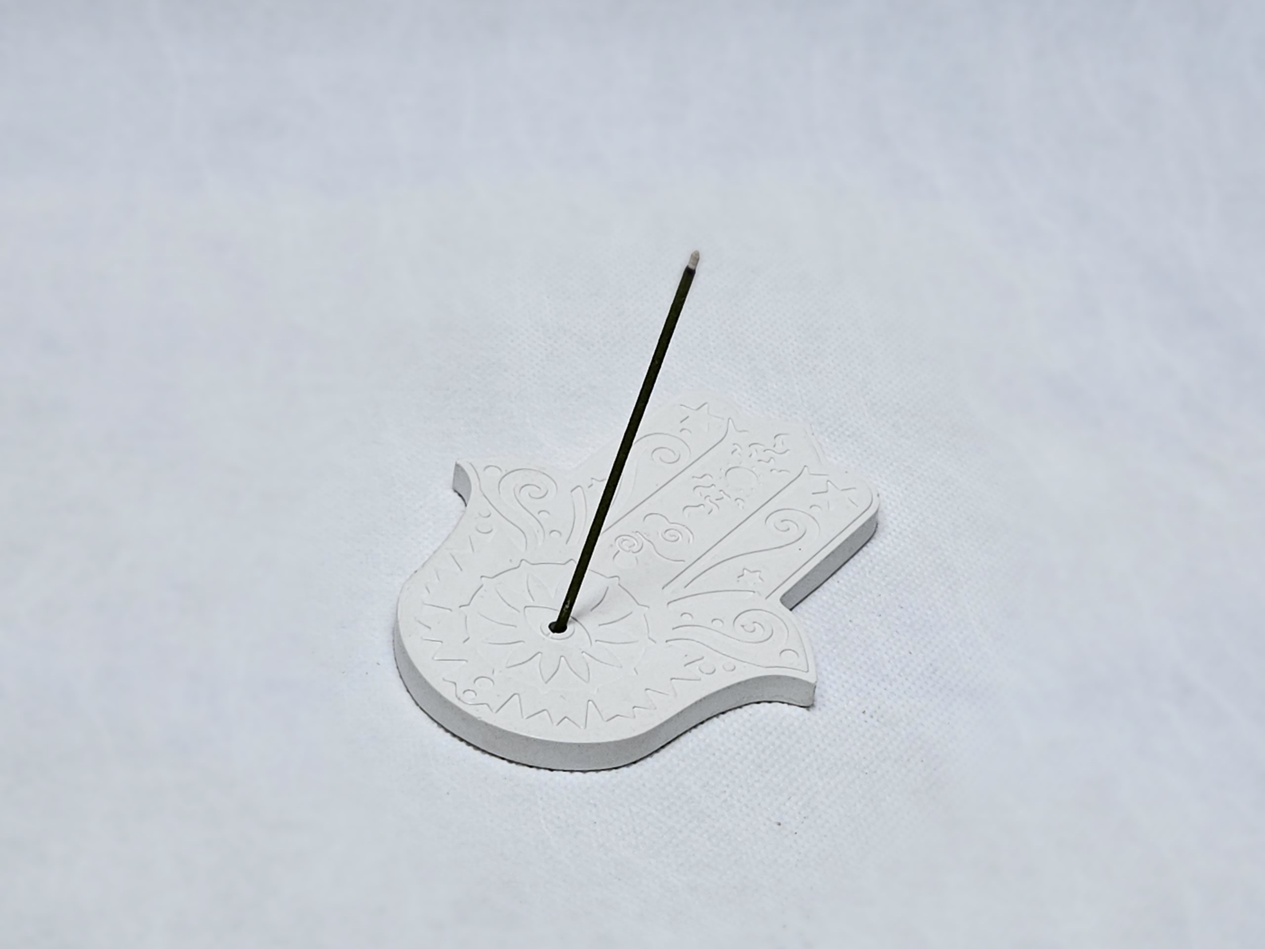 Gipsowa podstawka pod kadzidełka patyczkowe. Podstawka jest impregnowana i lakierowana eko produktami. Taka technika pozwala osiągnąć wodoodporność. Wystarczy przetrzeć mokrą ściereczką, aby ją wyczyścić. Każda podstawka jest ręcznie robiona dlatego odcienie minimalnie mogą się różnić od siebie.